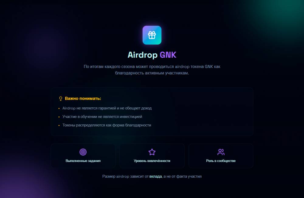 Именно за активность в рамках сезона платформа one world ai начисляет баллы, которые затем конвертируются в токены GNK через механизм эйрдропа.